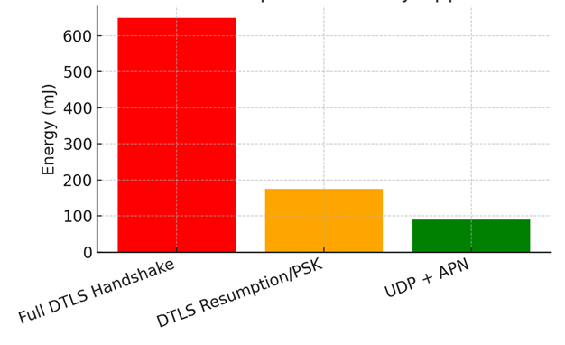 - Full DTLS Handshake: 500–800 mJ (depending on radio quality).
